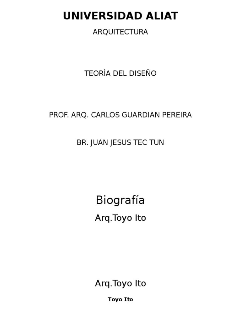 Su estilo venia marcado por la transparencia y por un carácter frágil y efímero. En 1943 regresaron a japón junto con su padre y sus dos hermanas, y en 1953 se produjo el fallecimiento de su padre, cuando toyo ito tenía 12 años. La biografía de toyo ito nos acerca a un reconocido arquitecto japonés, cuyos diseños arquitectónicos excepcionales mantienen edificaciones atemporales, proponiendo nuevos caminos en diversos proyectos, pero además buscando ampliar las posibilidades de la propia arquitectura. Toyo ito nació en seúl, corea del sur, el 1 de junio de 1941. Estudia arquitectura en el departamento de arquitectura de la universidad de tokio de donde obtiene su título en el año 1965. Su padre era un hombre de negocios interesado en la cerámica de la dinastía yi de corea. Toyo ito (seúl, 1941) es uno de los arquitectos más innovadores e influyentes del panorama actual. En 1943 regresaron a japón junto con su padre y sus dos hermanas, y en 1953 se produjo el fallecimiento de su padre, cuando toyo ito tenía 12 años.